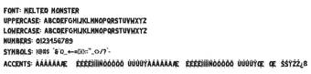 ด้วยขอบที่ไม่สม่ำเสมอและรูปทรงที่เกินจริง Melted Monster จึงโดดเด่นในทุกบริบทการออกแบบ มันนำเสนอความน่ากลัวในแบบการ์ตูนและมีความรู้สึกย้อนยุคเล็กน้อย ทำให้เหมาะสำหรับชื่อ โลโก้ และคำเชิญ ฟอนต์นี้มีการไหลที่เป็นธรรมชาติและความรู้สึกที่วาดด้วยมือเชิญชวนให้มีการทดลองสร้างสรรค์ ทำให้มั่นใจว่าโครงการทุกชิ้นที่มีฟอนต์นี้จะเปล่งประกายพลังที่ฟูมฟายและน่ากลัว